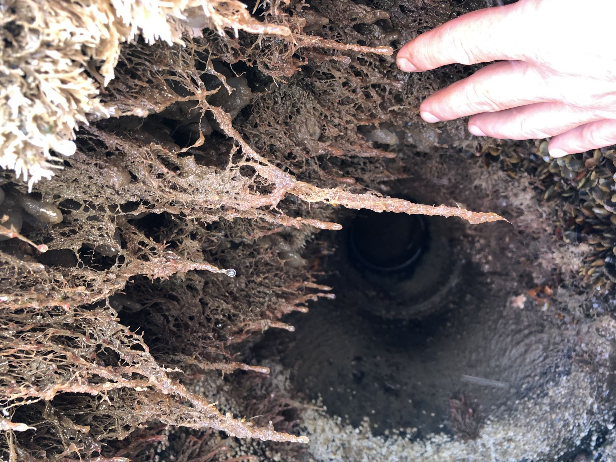 - Dels påfører mikroorganismer i form af bakterier, svampe og andre mikrobielle samfund et slimlag på indersiden af rørene, som gør det lidt lettere for ovennævnte larver at "finde fodfæste og bosætte sig", men slimlaget giver samtidig grundlaget for såkaldt mikrobielt induceret korrosion, hvilket fører til en aggressiv biologisk-kemisk korrosion på selv ellers normalt meget havvandsresistente metaller.